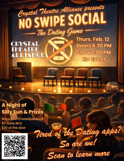 Step off the dating apps and into real-life fun! No Swipe Social is a playful, low-pressure live dating game where participants and the audience interact, laugh, and explore real connection. Singles, couples, and friends are welcome—come for the game, stay for the energy, and flex your social muscles in a silly, entertaining night out.